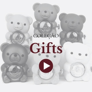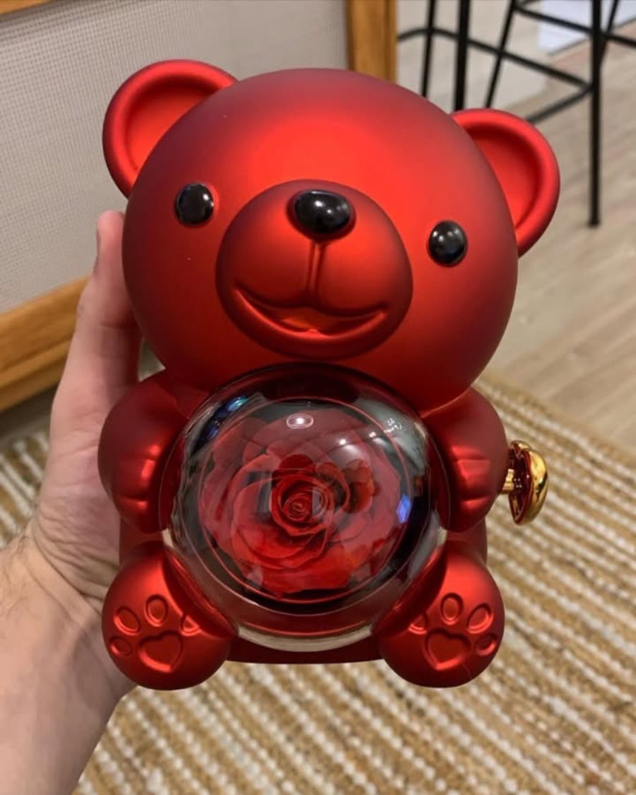 Urso Rotativo com Rosa Eterna & Colar Personalizado + Brinde Surpresa