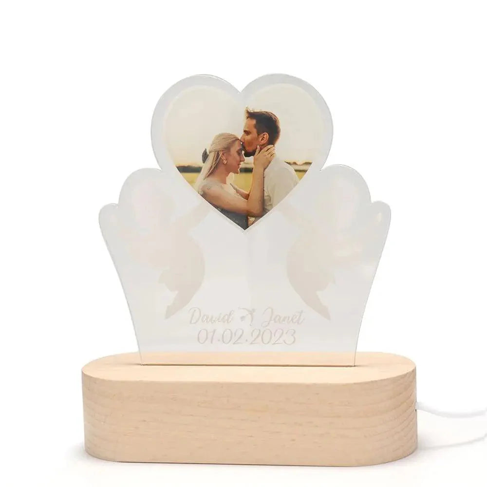 Transforme seus momentos mais especiais em luz eterna com nossa Lâmpada Amor Brilhante Anjos Personalizada com foto. Personalize com a foto do casal e mergulhe em uma atmosfera de amor e felicidade sempre que ligar essa luz mágica.